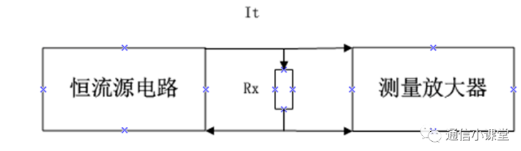 在测量阻值较小的电阻时,引线电阻和连接点处的接触电阻会使测量结果不准确,因此要使用四探头电流检测法。其原理如图2-1所示:该方法具有灵敏度高、测量准确加上方法巧妙,使用方便、对电源稳定性要求不高等特点,已被广泛地应用于电工技术和非电量电测中。