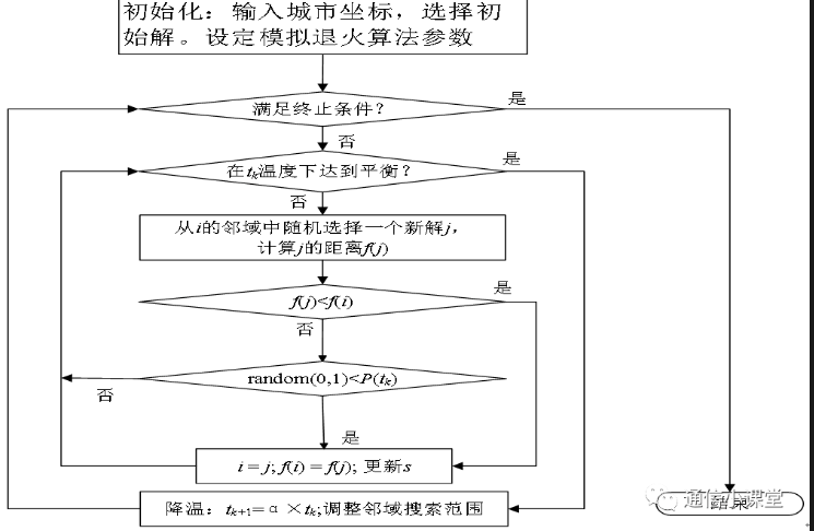 模拟退火算法来源于固体退火原理,将固体加温至充分高,再让其徐徐冷却,加温时,固体内部粒子随着温度升高变为无序状态,内能增大,而慢慢冷却时粒子渐趋有序,在每个温度都达到平衡态,最后在常温时达到基态,此时内能减为最小。