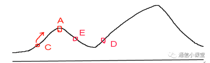 爬山算法:假设C点为当前解,爬山算法搜索到A点这个局部最优解就会停止搜索,因为在A点无论向那个方向小幅度移动都不能得到更优的解。