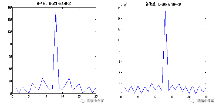 c)信噪比为20时补偿结果 d)信噪比为30时补偿结果